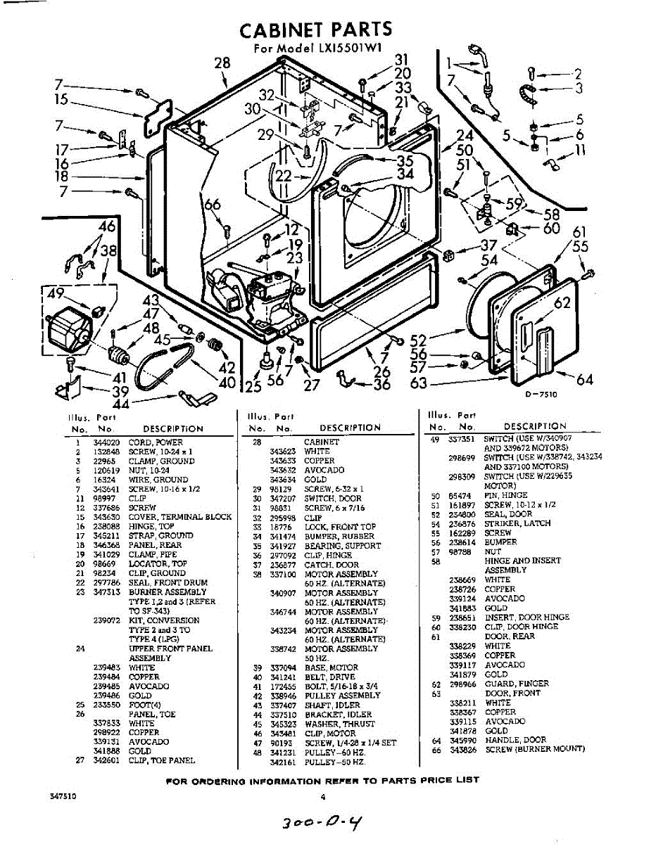 Parts for Whirlpool LXI5501W1: 04 - Section Parts