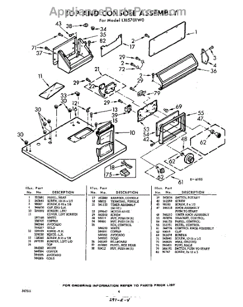 Parts for Whirlpool LXI5701W0: 04 - Section Parts