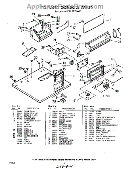 Parts for Whirlpool LXI5721W0: 04 - Section Parts