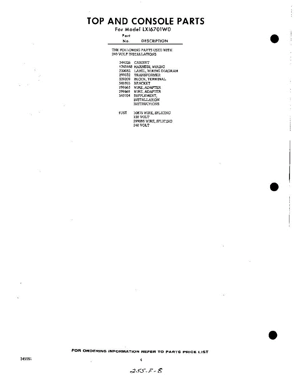 Parts for Whirlpool LXI6701W0: 04 - Section Parts