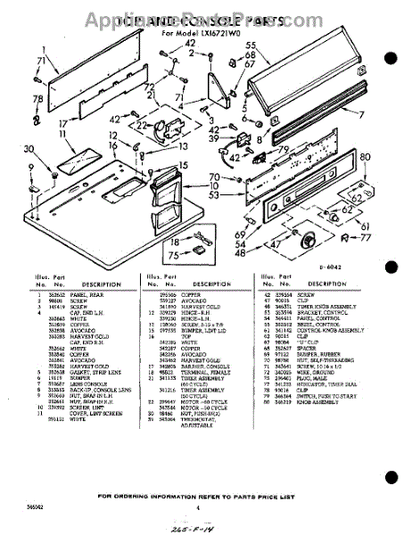 Parts for Whirlpool LXI6721W0: 04 - Section Parts