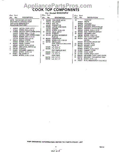 Parts for RDE390PW