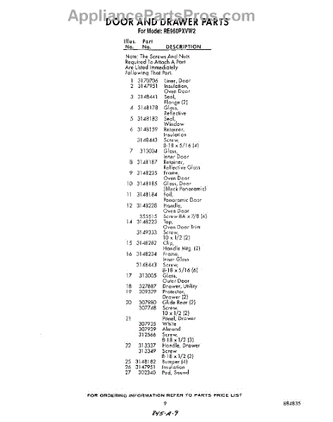 Parts for Whirlpool RE960PXVN2: 09 - Section Parts