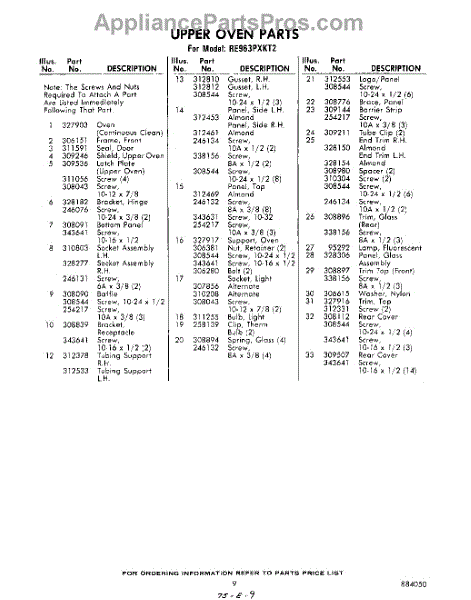 Parts for Whirlpool RE963PXKT2: 09 - Section Parts