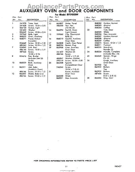 Parts for Whirlpool RFE4900W: 11 - Section Parts