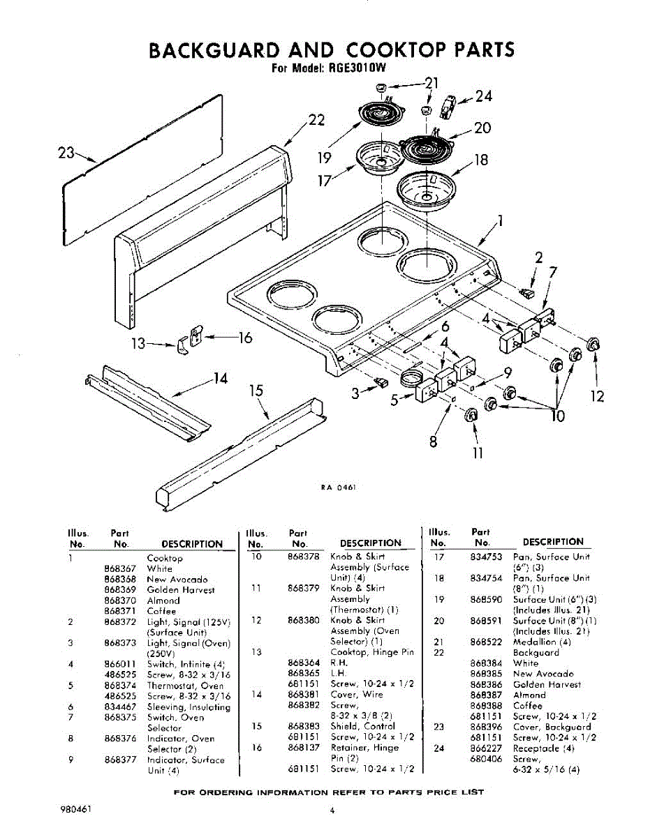 Parts for Whirlpool RGE3010W: 04 - Section Parts