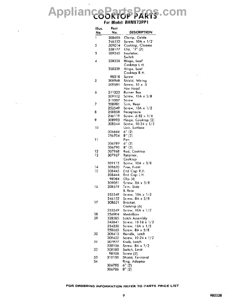 Parts for Whirlpool RHM973PP1: 09 - Section Parts