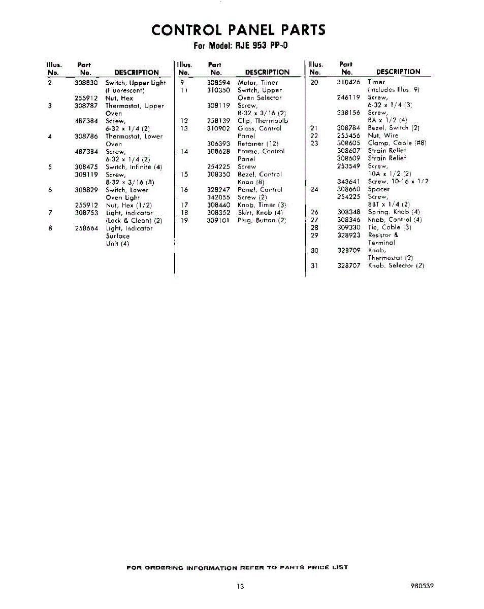 Parts for Whirlpool RJE953PP0: 13 - Section Parts