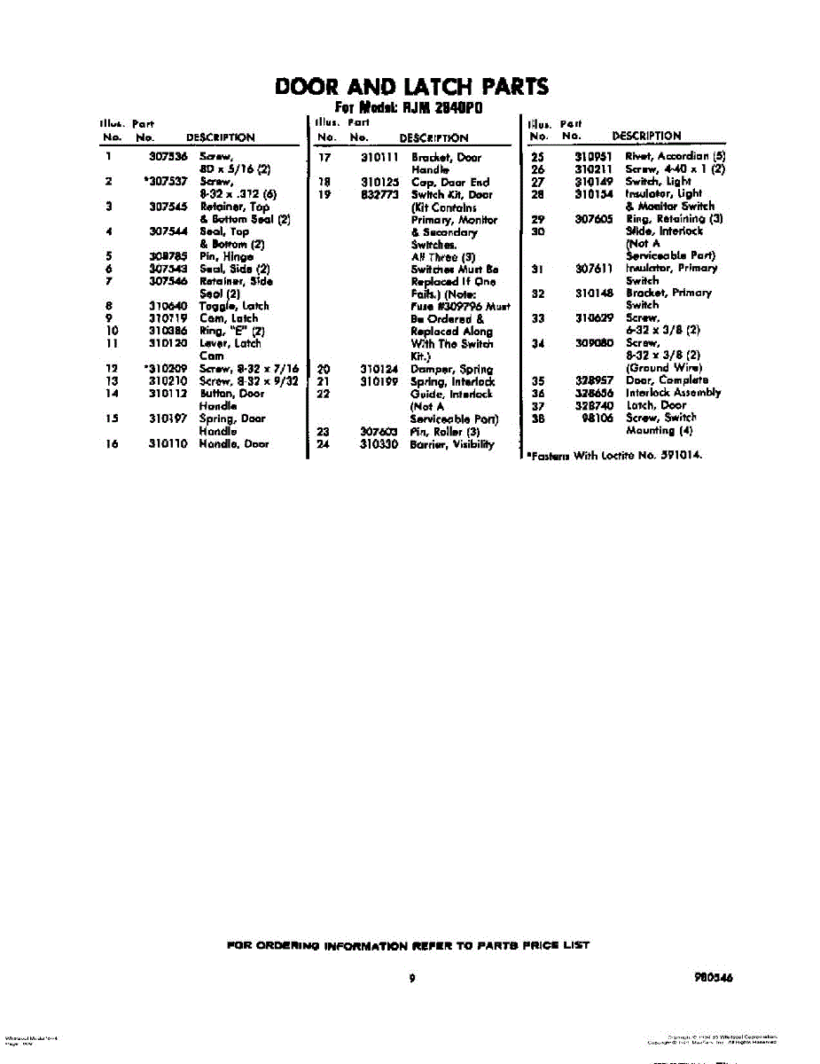 Parts for Whirlpool RJM2840P0: 09 - Section Parts