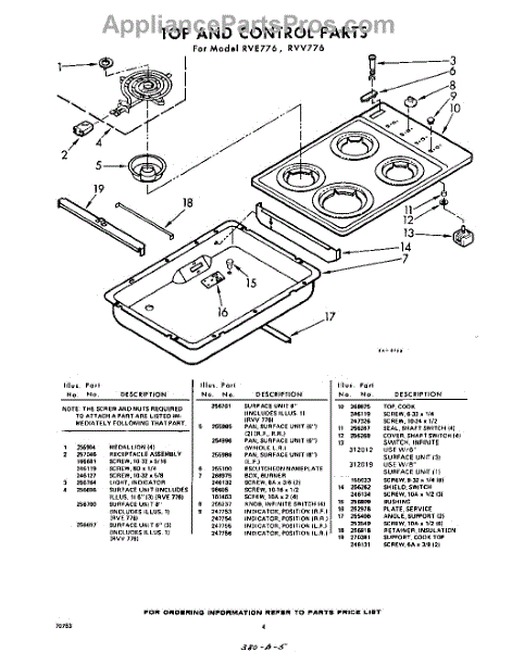Parts for Whirlpool RVE776: 04 - Section Parts