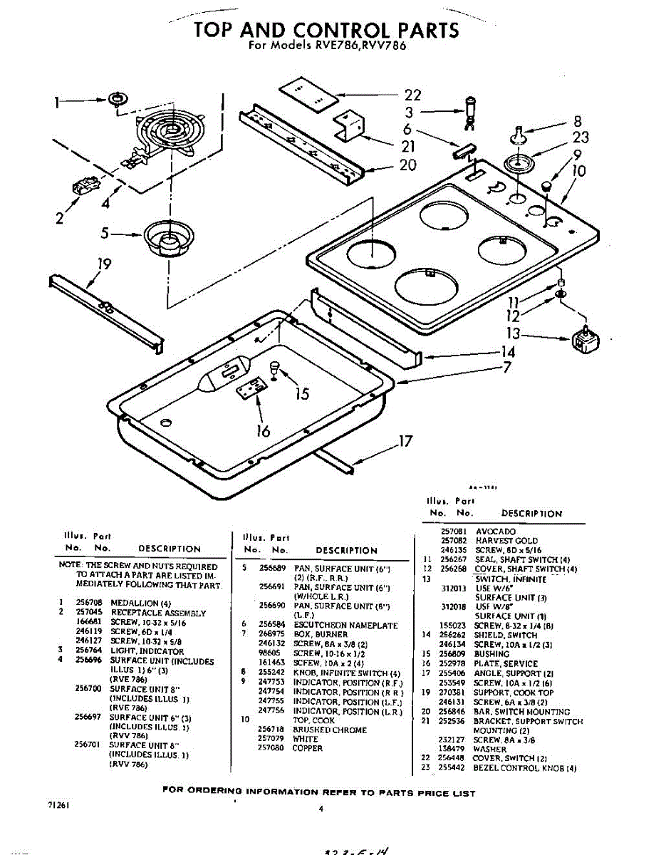 Parts for Whirlpool RVV786: 04 - Section Parts