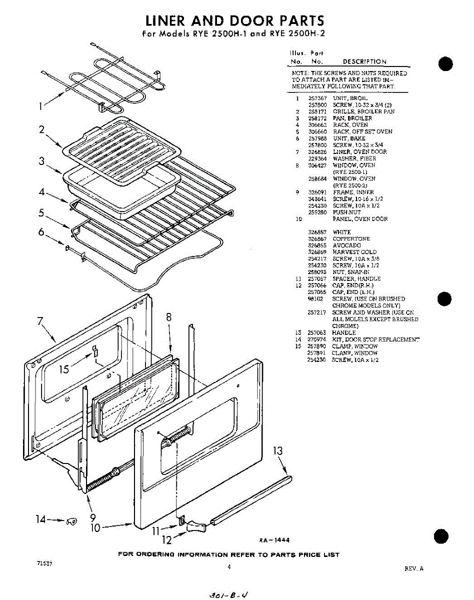 Parts for Whirlpool RYE2500W1: 04 - Section Parts