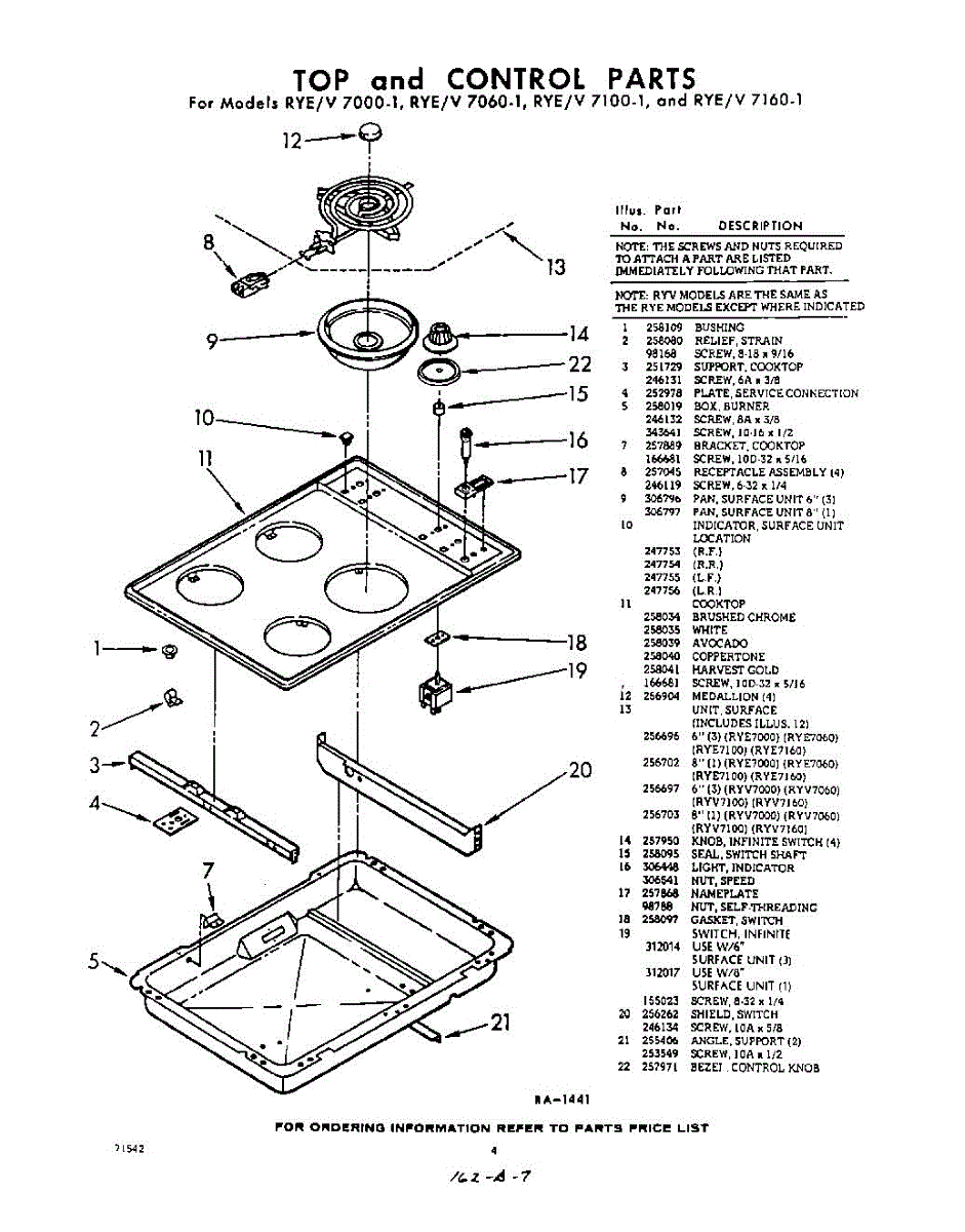 Parts for Whirlpool RYE7000W1: 04 - Section Parts