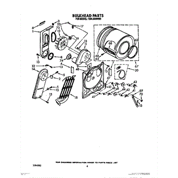 Replacement drum front bulkhead for dryers. Installs at the front of the drum assembly. Needed when original is cracked, damaged, or worn out.