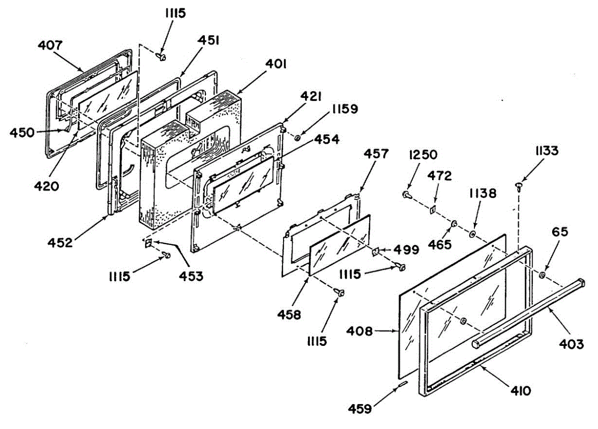 Intermediate glass panel for oven doors. Installs between inner and outer door glass. Replace if cracked, shattered, or broken to restore appearance.