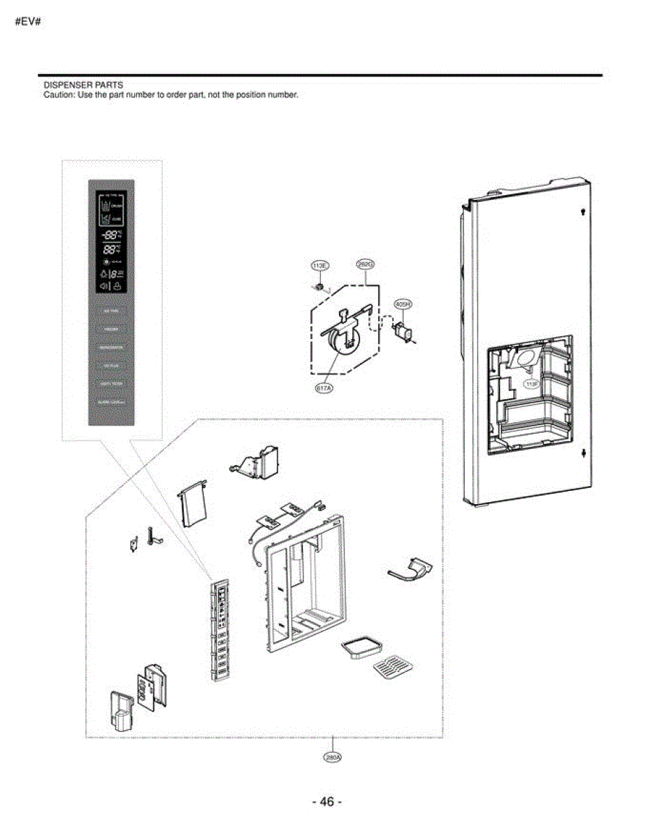 • Remove the dispenser trim/panel to access the ice door mechanism; note spring orientation with a photo