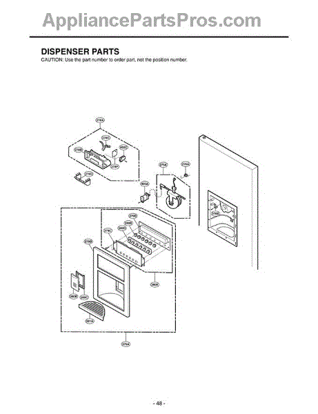 The Ice Chute Door is an OEM part for LG refrigerators. It is located in the ice dispenser area on the front of the refrigerator. It opens and closes automatically when ice is dispensed, ensuring a controlled release of ice cubes or crushed ice into the user's glass or container. The door helps to prevent frost buildup, maintain proper insulation, and protect the ice inside the dispenser.