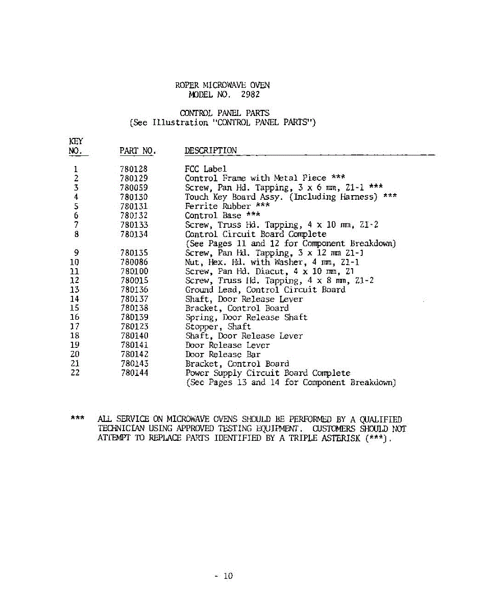 Parts for Whirlpool 2982000: 11 - Section Parts