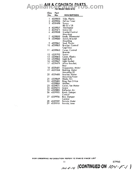 Parts for Whirlpool 8624W1C: 11 - Section Parts