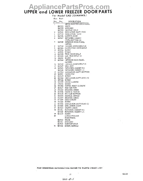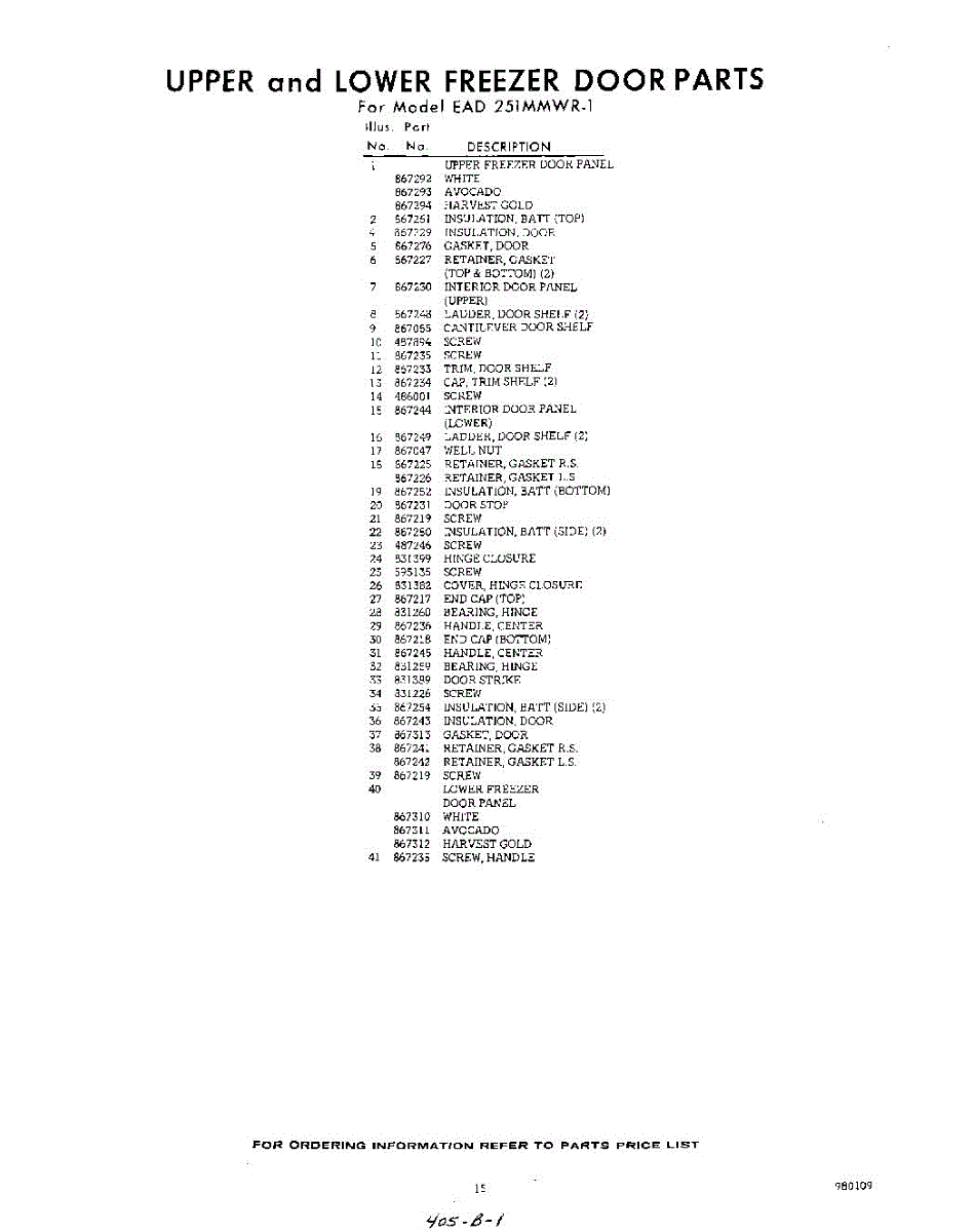 Parts for Whirlpool EAD251MMWR1: 15 - Section Parts