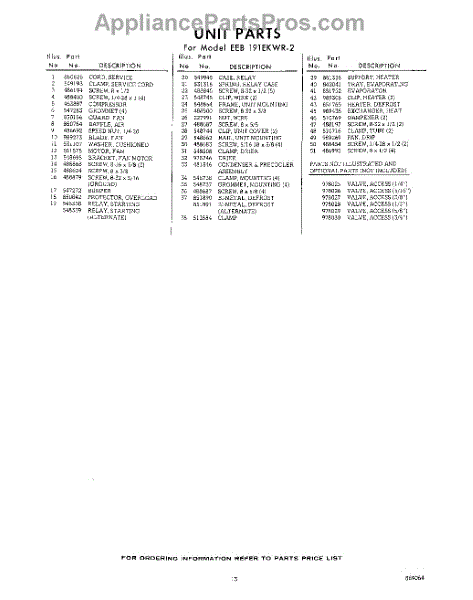 Parts for EEB191EKWR2