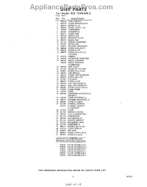 Parts for Whirlpool EEB191PKWR2: 13 - Section Parts