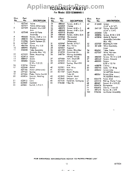 Parts for Whirlpool EED192MMWR1: 13 - Section Parts