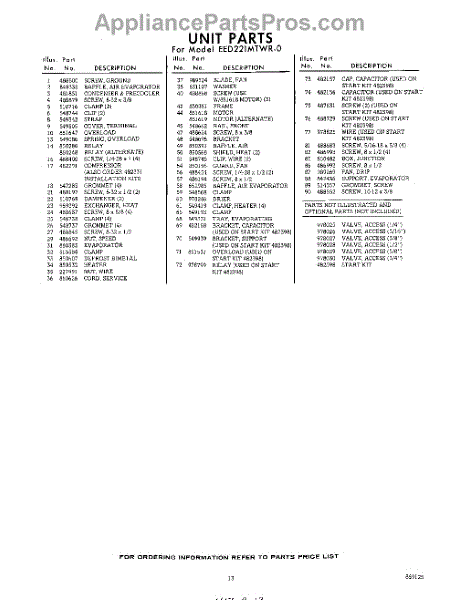 Parts for Whirlpool EED221MTWR0: 13 - Section Parts