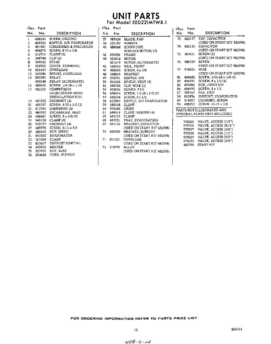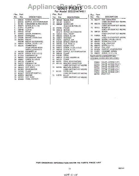 Parts for Whirlpool EED221MTWR1: 13 - Section Parts