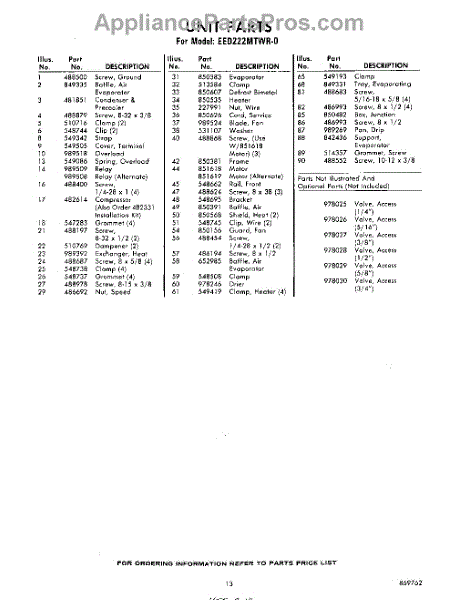 Parts for Whirlpool EED222MTWR0: 13 - Section Parts