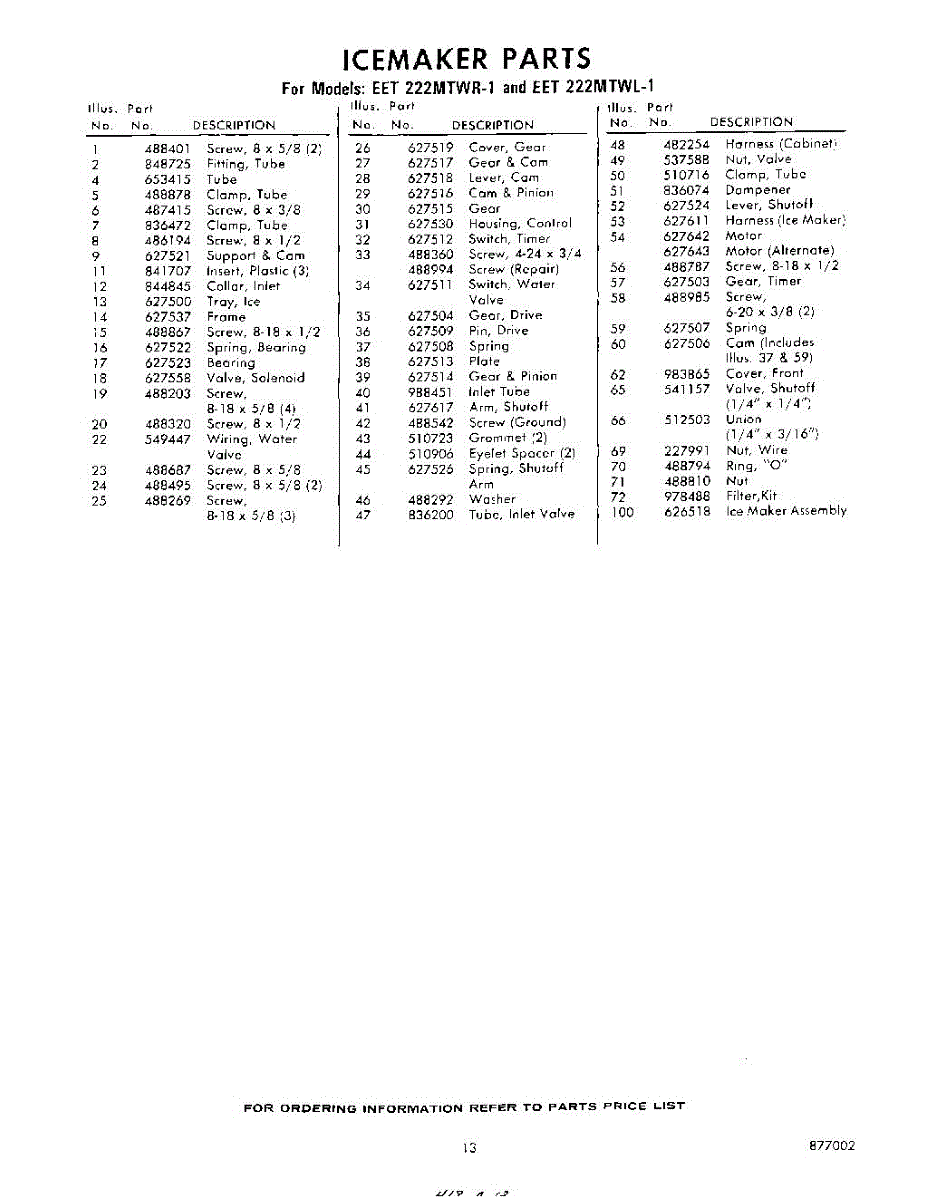 Parts for Whirlpool EET222MTWR1: 13 - Section Parts