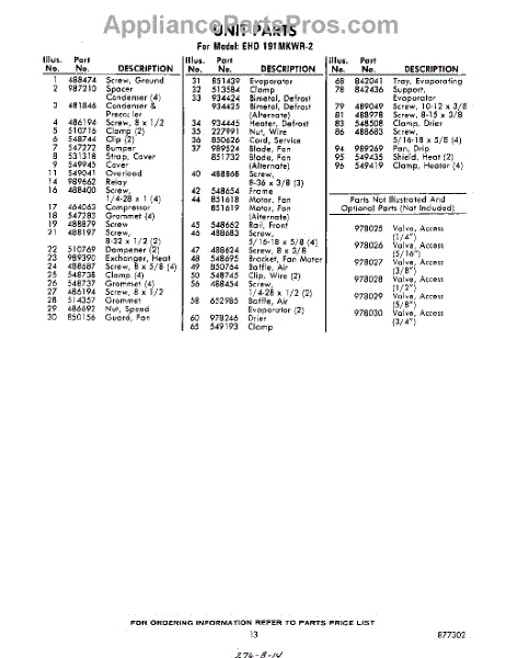 Parts for Whirlpool EHD191MKWR2: 13 - Section Parts