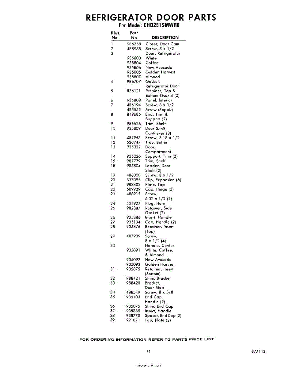Parts for Whirlpool EHD251SMWR0: 11 - Section Parts