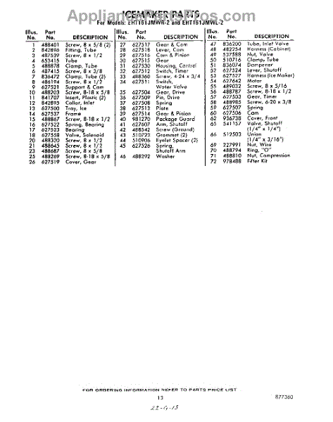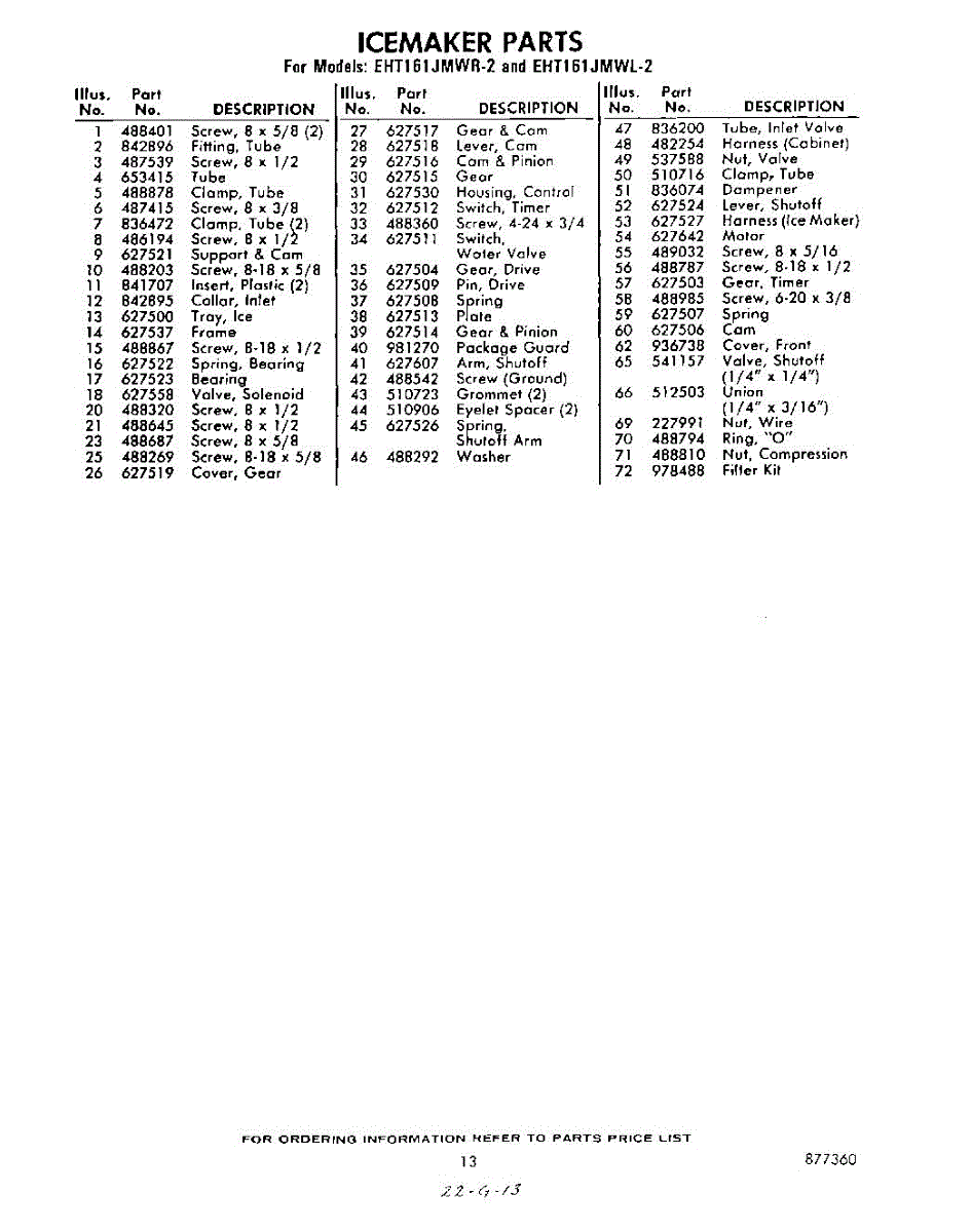 Parts for Whirlpool EHT161JMWL2: 13 - Section Parts