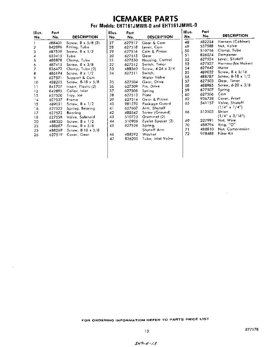 Parts for Whirlpool EHT161JMWR0: 13 - Section Parts