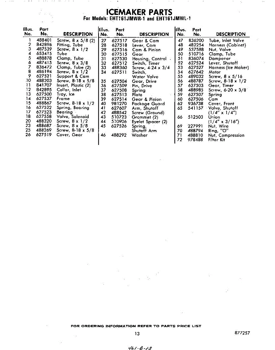 Parts for Whirlpool EHT161JMWR1: 13 - Section Parts