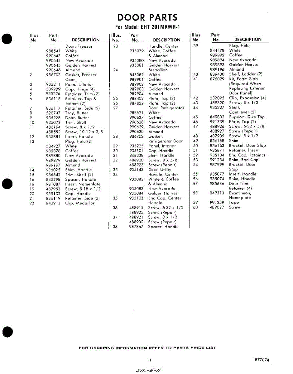 Parts for Whirlpool EHT201MKWR1: 11 - Section Parts