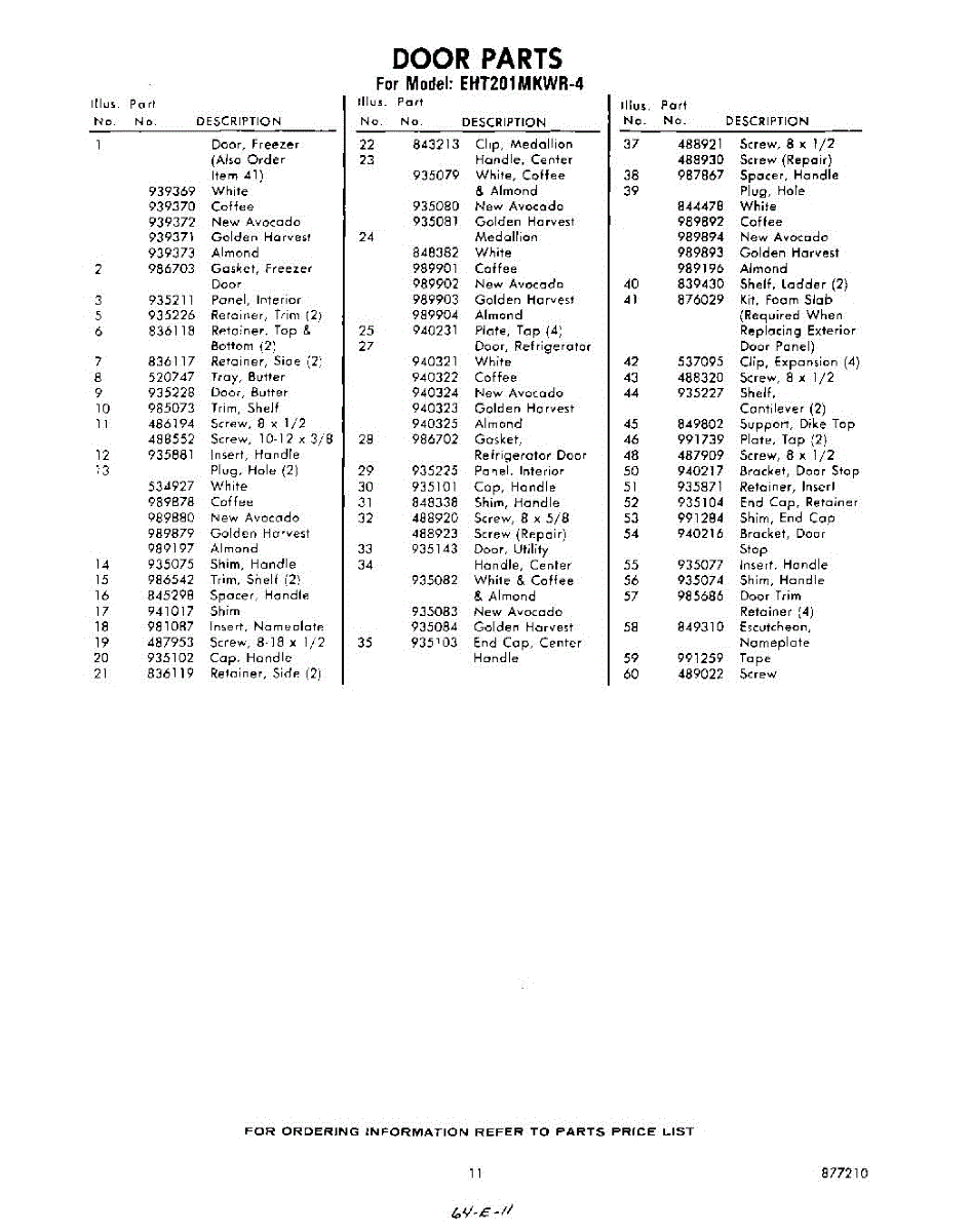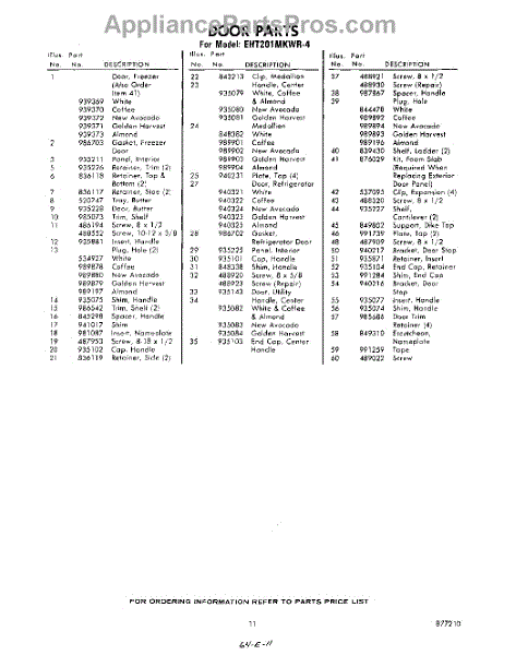 Parts for Whirlpool EHT201MKWR4: 11 - Section Parts