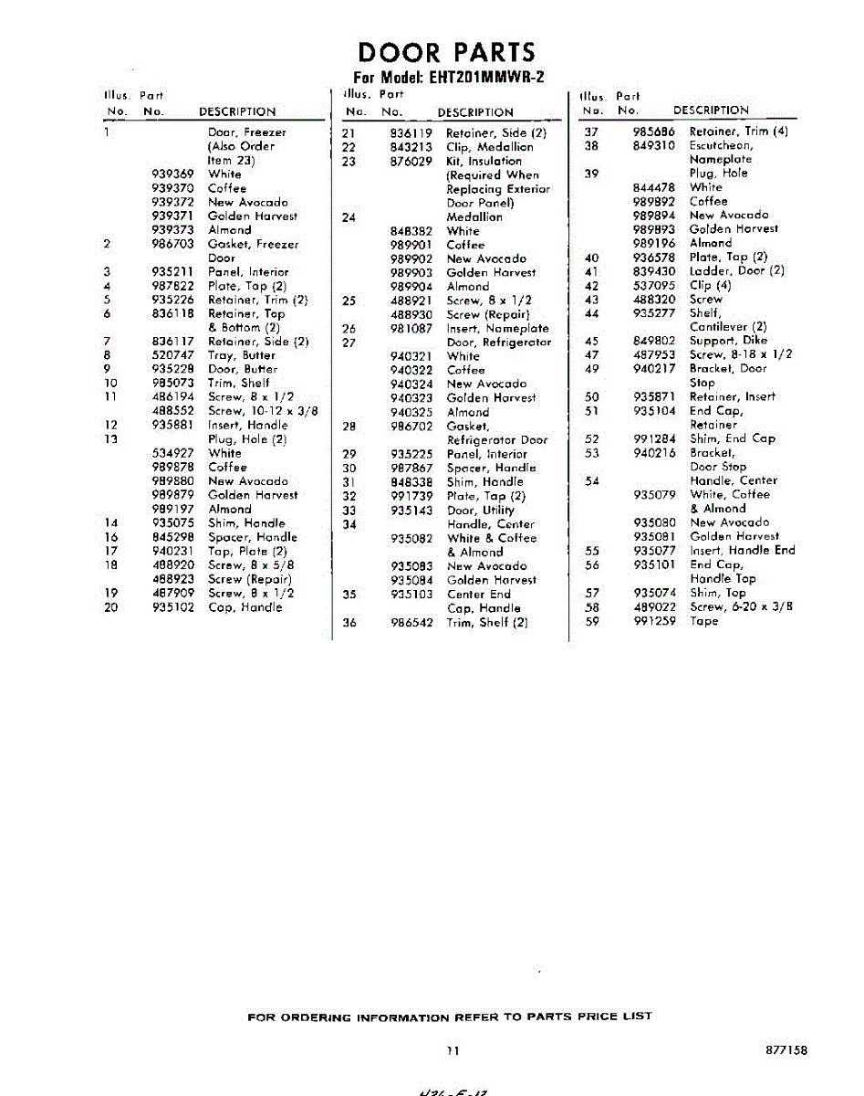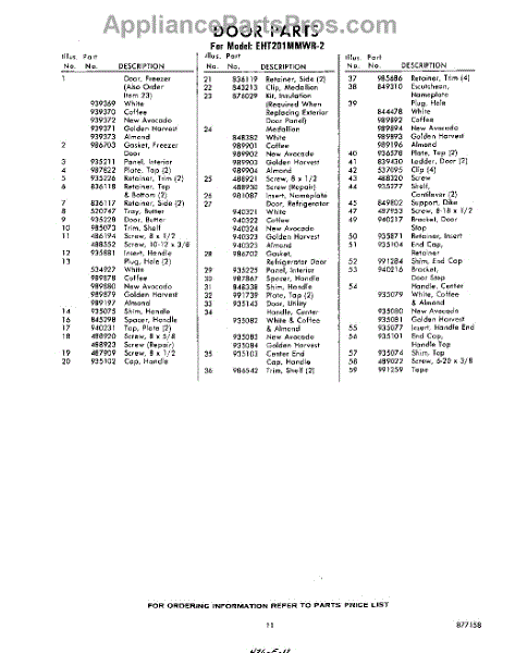 Parts for Whirlpool EHT201MMWR2: 11 - Section Parts