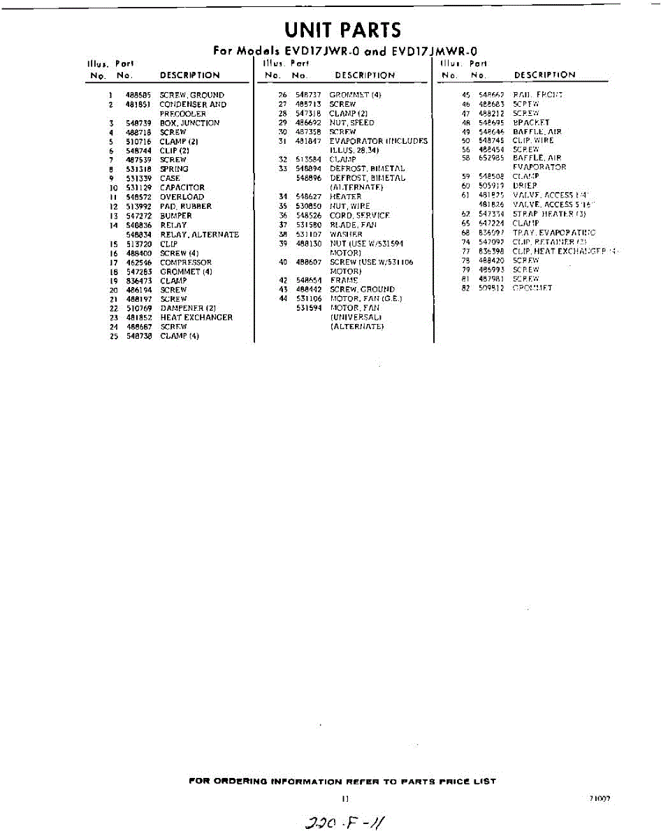 Parts for EVD17JMWR0