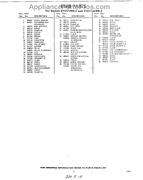 Parts for EVD17JWR0