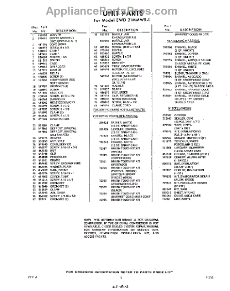 Parts for EWD21MMWR1