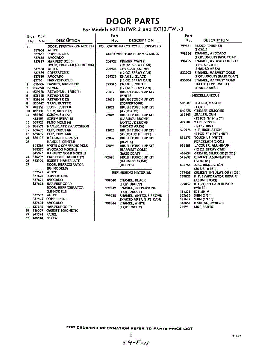 Parts for Whirlpool EXT13JTWR3: 11 - Section Parts