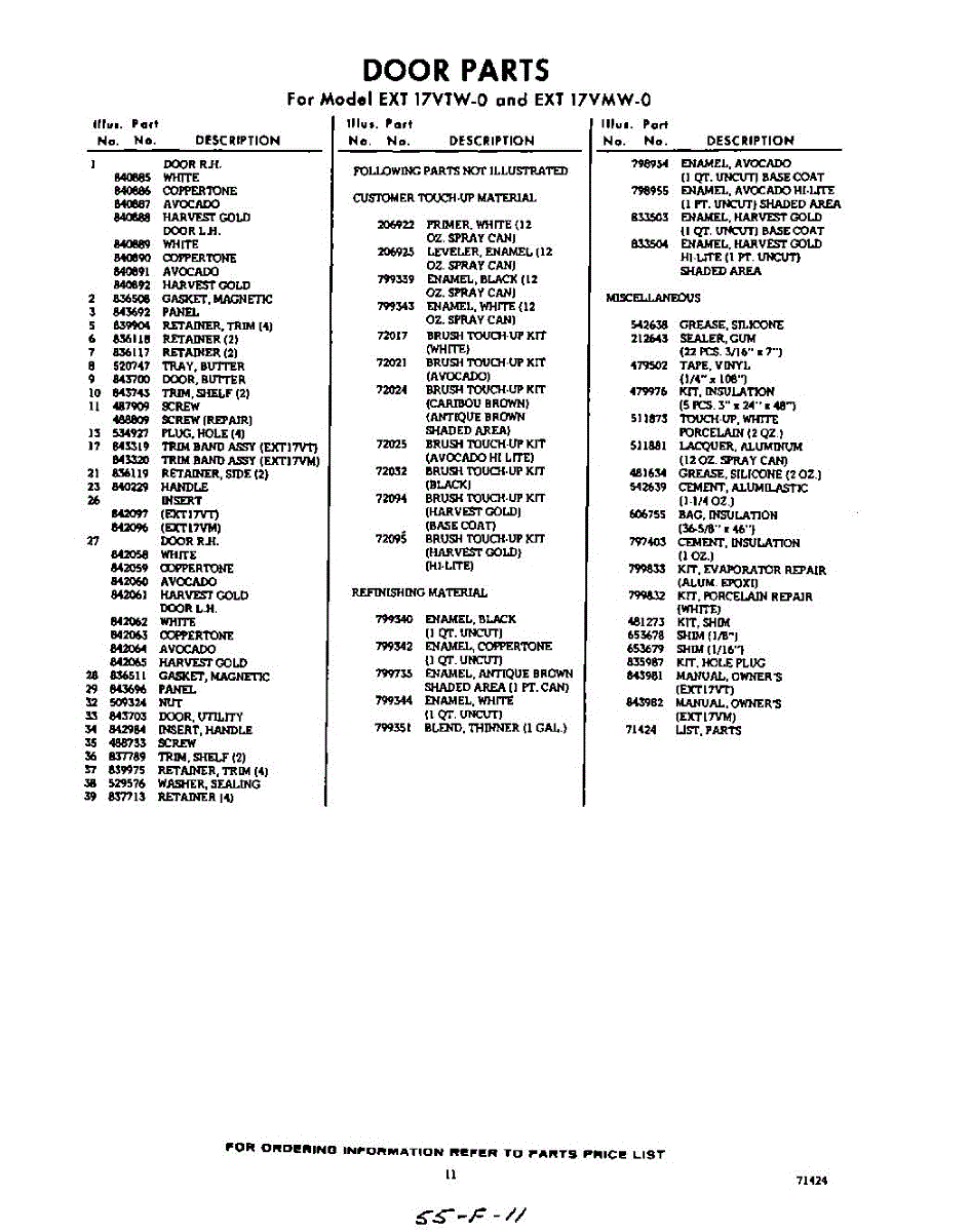 Parts for Whirlpool EXT17VTW0: 11 - Section Parts