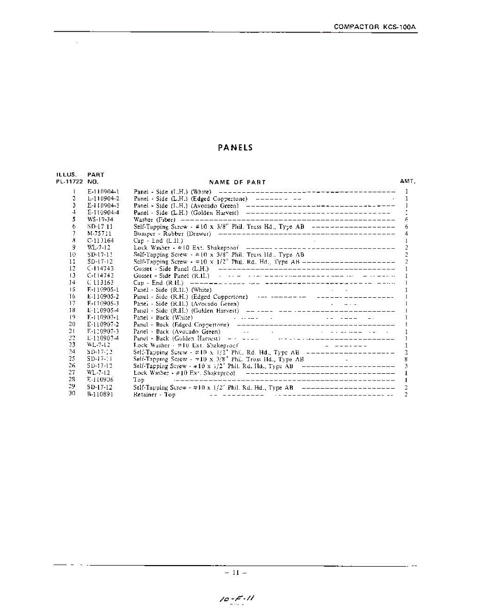 Parts for Kitchenaid KCS100A: 11 - Section Parts