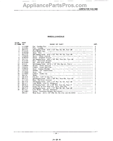 Parts for Kitchenaid KCS100B: 14 - Section Parts