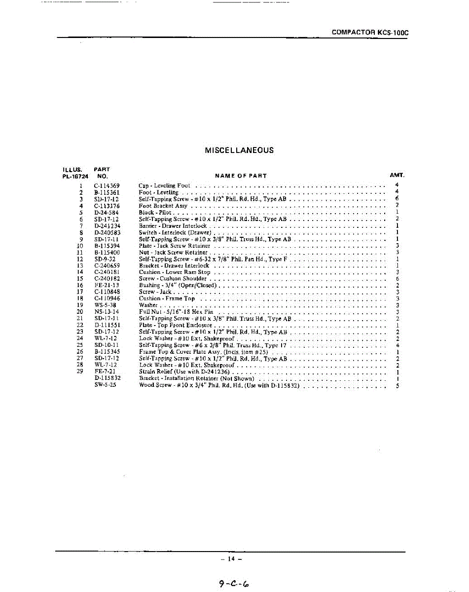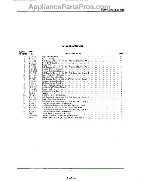 Parts for Kitchenaid KCS100C: 14 - Section Parts
