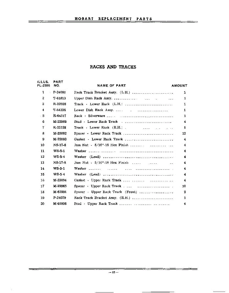 Parts for Kitchenaid KD21: 13 - Section Parts