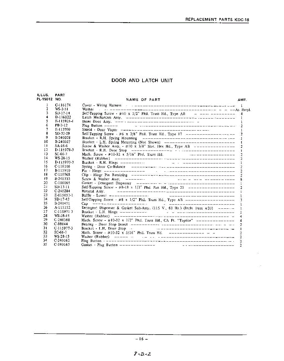 Parts for Kitchenaid KDC38: 16 - Section Parts