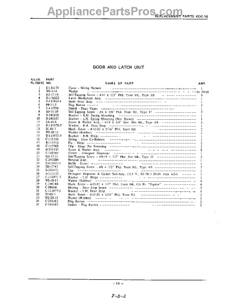 Parts for Kitchenaid KDC58: 16 - Section Parts